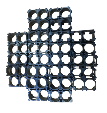 Đế giữ pin 18650 2 cell được dùng để cố định các pin, tránh va chạm với nhau, tránh chậm trạm khi sử dụng trong thời gian dài, rung lắc mạnh. Đế có thể tháo lắp dễ dàng, ghép nối với nhau tạo thành các khối pin theo ý muốn. Đế pin được làm bằng chất liệu nhựa, nhỏ gọn dễ dàng lắp đặt, tính thẩm mỹ cao.
